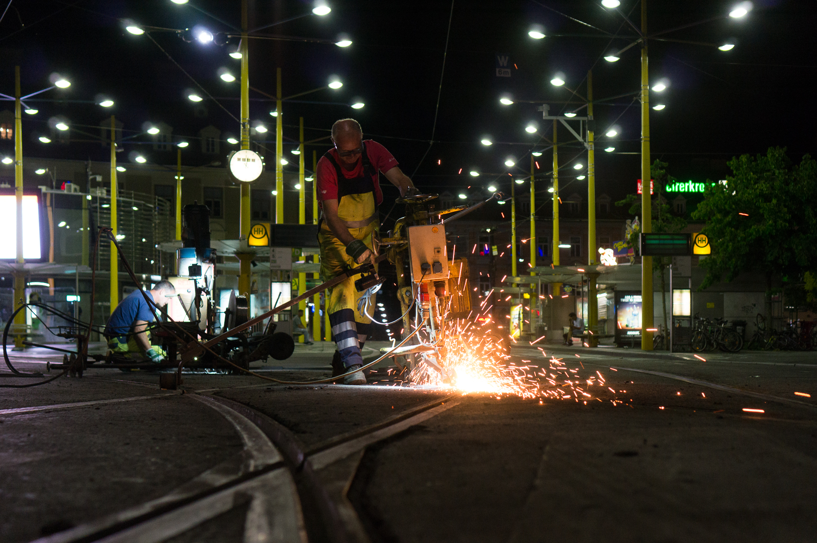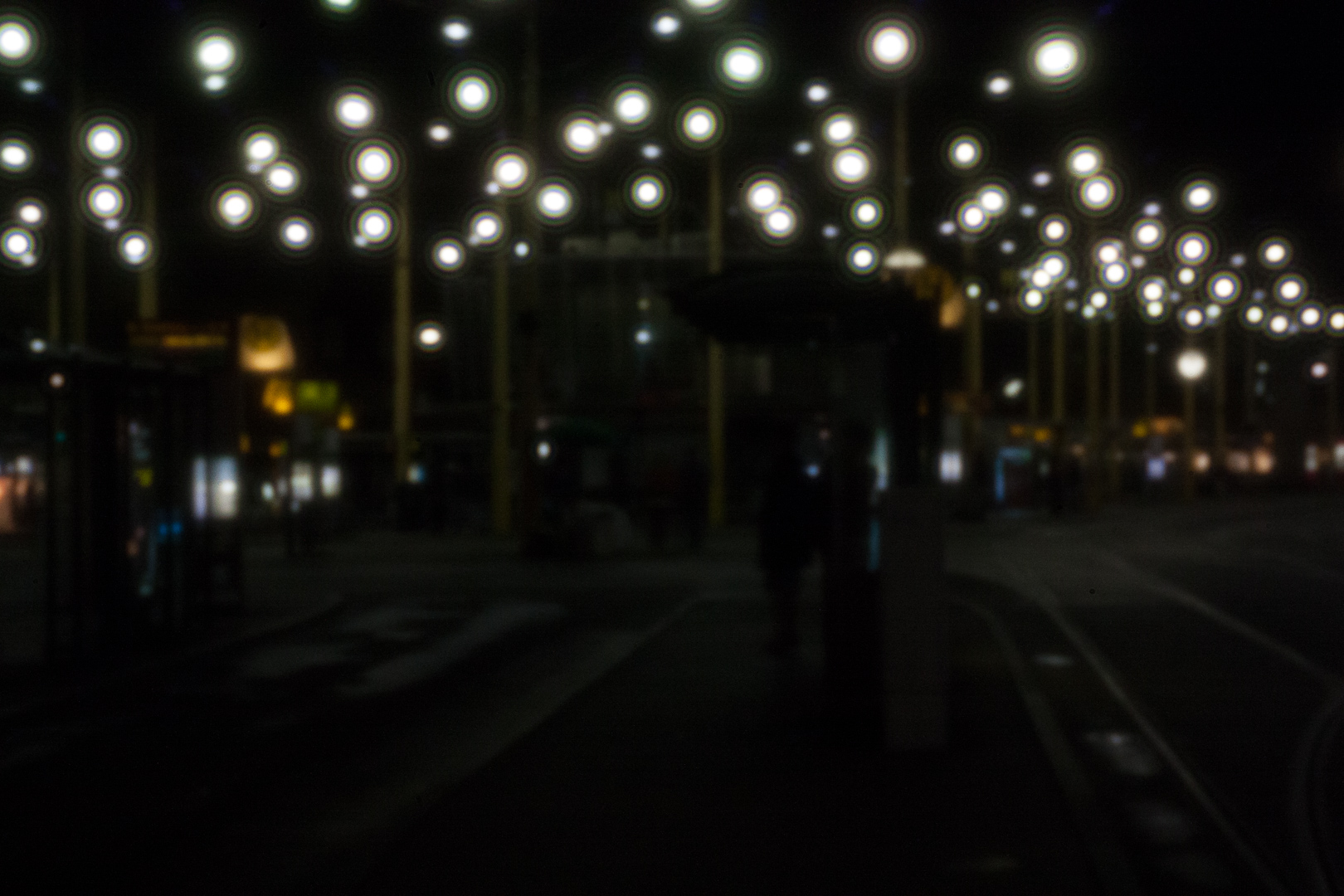 I have captured the greenish mist of winter nights painted by the army of mercury street lamps on heavily expired film as well as using a digital pinhole camera, I have played with the strong shadows cast by the pylons and with the perspectives of the tracks in strong back-light. I have taken sneaky street photos with a digital compact and I toke some nice medium format portraits here. I find it fascinating that every time I pass by here something is different and there is always a new perspective to explore. In addition it is really fun to see how much impact the particular camera/lens has on the end result even under otherwise similar circumstances.